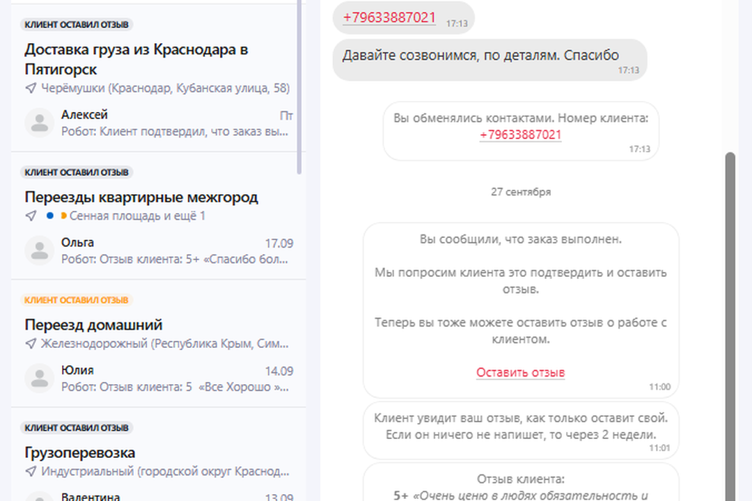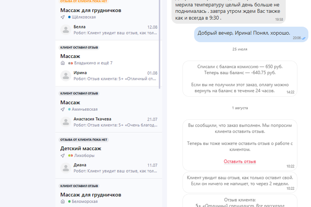 Никаких нареканий или пожеланий нет к площадке, добавить нечего, потому что всё удобно. Мне даже очень нравится: в каком районе работал, там и предлагает система в дальнейшем. Но и минус в этом тоже есть. Потому что, бывает, уеду в Троицк, оттуда и начинают заявки сыпаться, помимо подходящего с Подольска, где в основном и бываю. Что касается оплаты, то перед отправкой сообщения клиенту решаю, что выгоднее — комиссия или сразу заплатить, по-разному. Поддержка практически сразу же помогает.